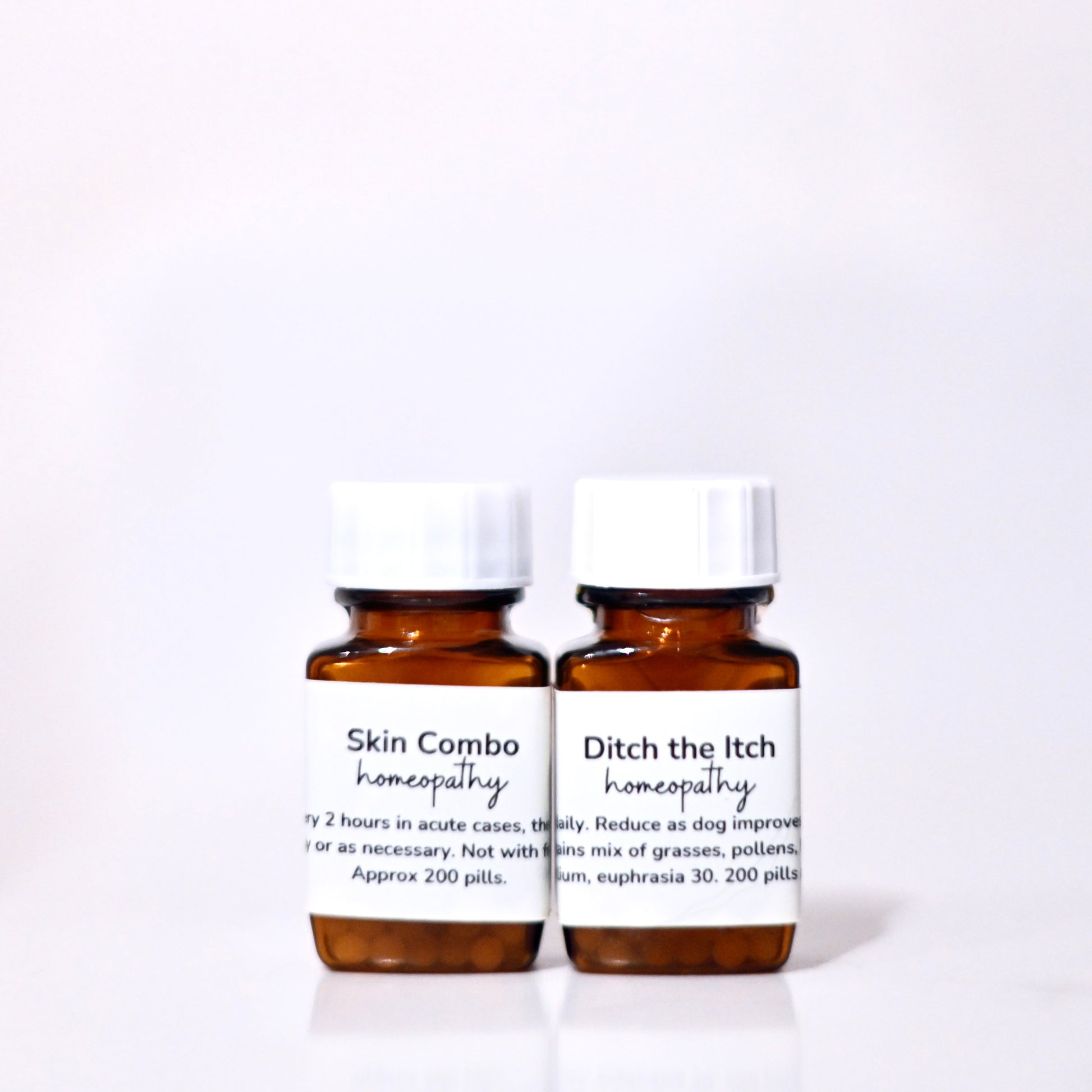 ✅ Skin Combo – A must-have for dogs with sensitive, sore, or itchy skin, this blend of homeopathy helps calm irritation and support overall skin health. Whether it’s dry patches, hotspots, or general discomfort, Skin Combo provides relief.