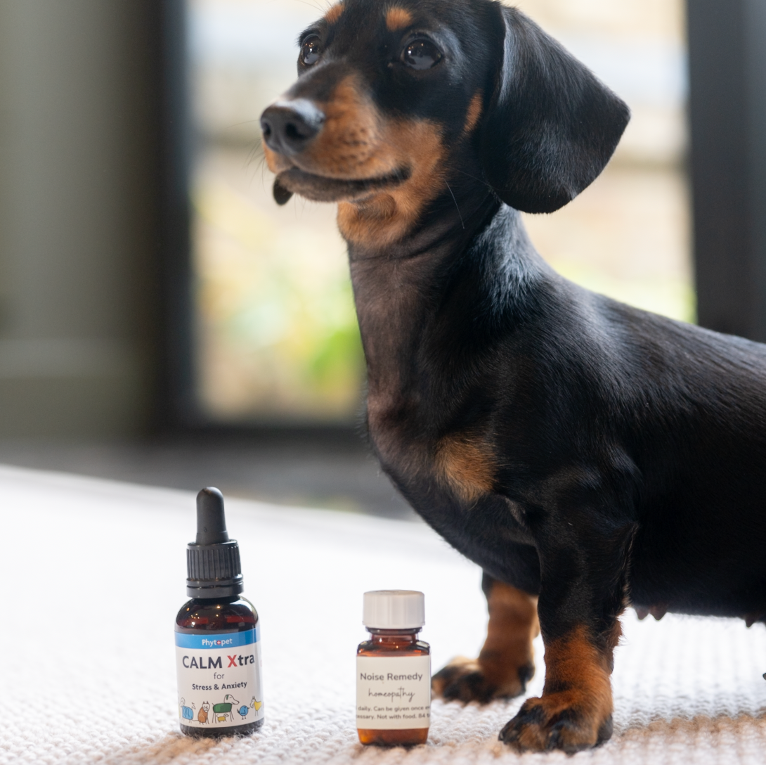 Valerian, Oat, Skullcap, Passionflower, Wild Lettuce and Jamaican Dogwood. Use up to 3 times daily in the run-up to Fireworks Night and then top up with a few drops before a noisy event. Calm Xtra works fast and will be effective for most dogs within 20 minutes.