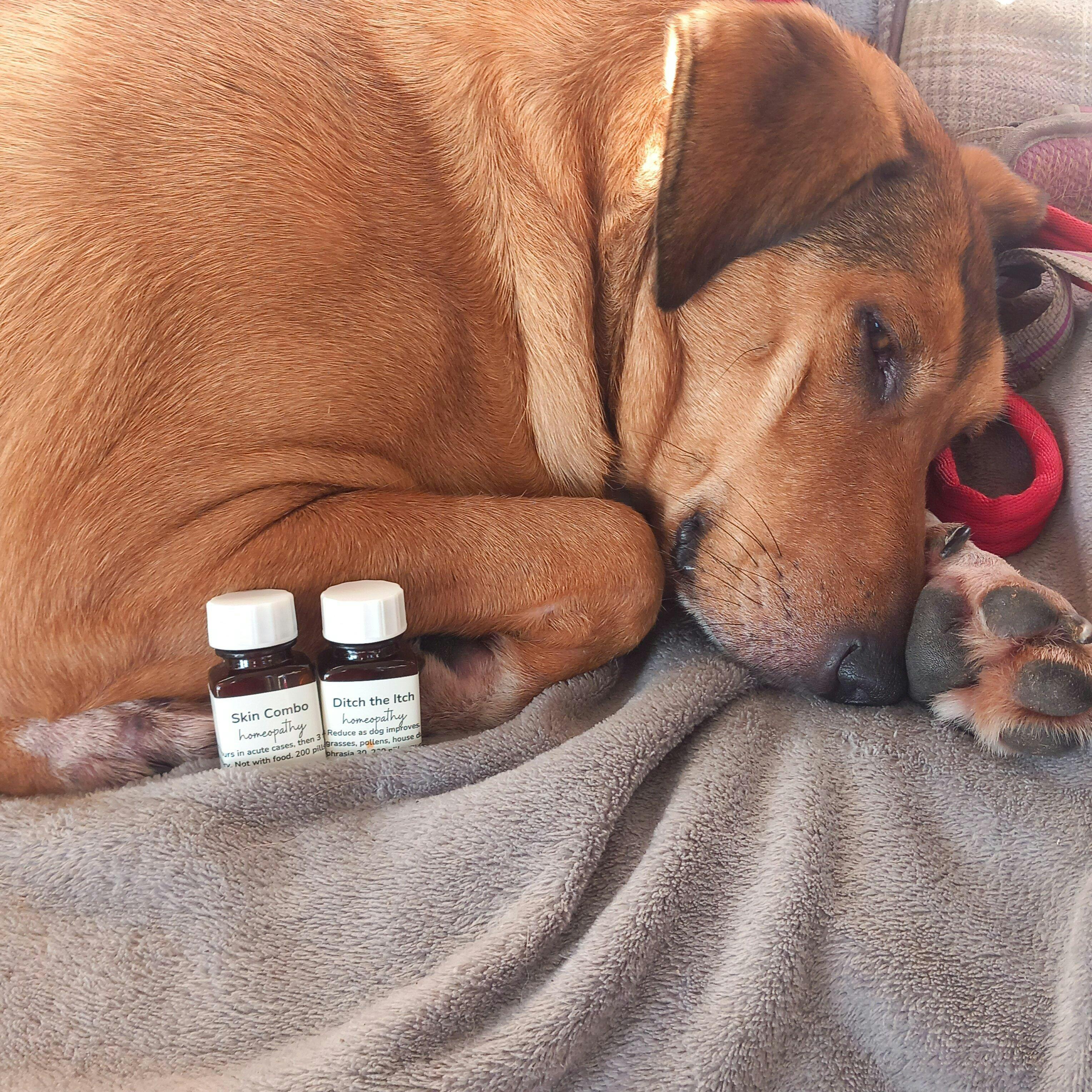 - Skin Combo pills: These homeopathic pills support sore, itchy skin and will help to calm amd soothe. Pack contains 200+ pills. Give one pill every few hours or as necessary.